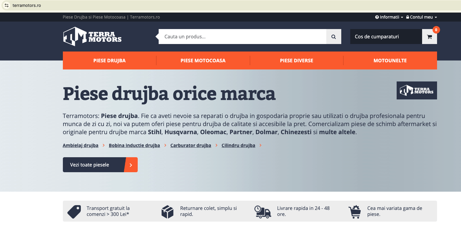 Platforma online https://www.terramotors.ro/ este un magazin specializat în comercializarea de piese de schimb și accesorii pentru o gamă variată de motounelte, adresându-se atât utilizatorilor casnici, cât și profesioniștilor din domeniul forestier, agricol sau de întreținere a spațiilor verzi.